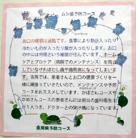虫歯予防(かばさんコース)や歯周病管理(かめさんコース)を推奨しています。