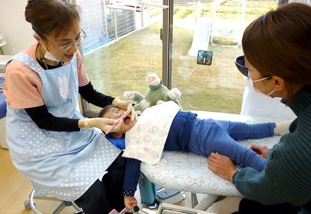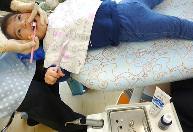 また、萌出中の虫歯になりやすい歯に対し、フッ素液のシリンジ注入を無料でおこなっています。