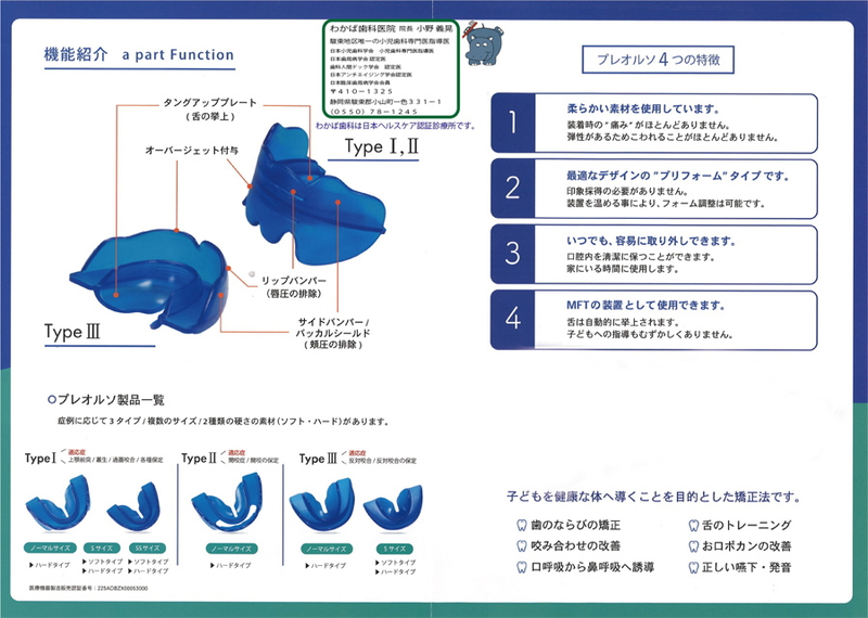 Myobrace Memberとは子供たちの不正咬合(乱れた歯並び)を早期に治療するシステムを取り入れたクリニックです。不正咬合の原因となる口腔習癖(舌癖、口呼吸など)を治療することで、本来子供が持っている正しい歯並びを促します。また、呼吸を改善することは歯並びだけでなく健康面においても大きなメリットがあります。