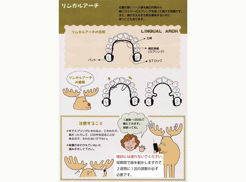 リンガルアーチ終了後はお子様には、下顎を前に出す癖は止めさせてください。変な癖があり、「おかしい」と気がつかれたときは、すぐに連絡をしてください。