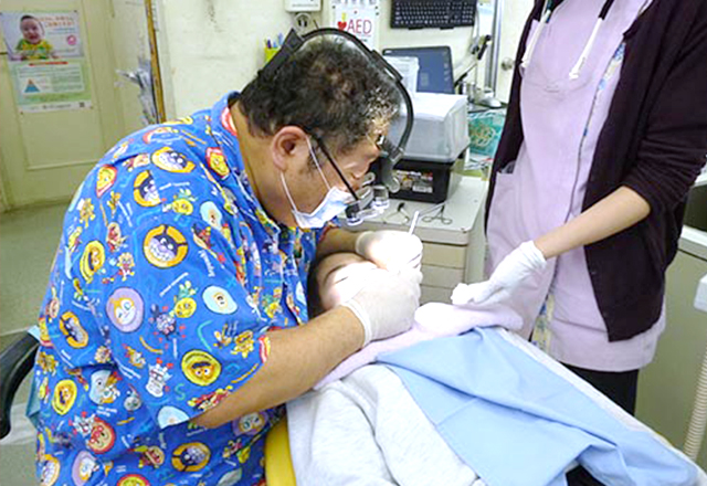 説明を理解していただいた後に治療を開始します。セラミック装置(ブラケット)を取り付けるときのみ約2時間かかります。