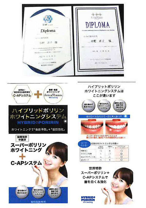 スーパーポリリンホワイトニング1回¥16,50033回実施でシェードB1になる方が多いです。歯管強化CAP5,500円との併用をおすすめします。