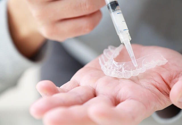 ホームホワイトニングは、オフィスホワイトニングとは対照的にご自宅でおこなえる治療法です。専門の歯科医院でご自身に合わせたサイズのマウスピースを製作し、ご帰宅後に専用のジェルをマウスピースに入れて使用することでホワイトニングを行うことができます。